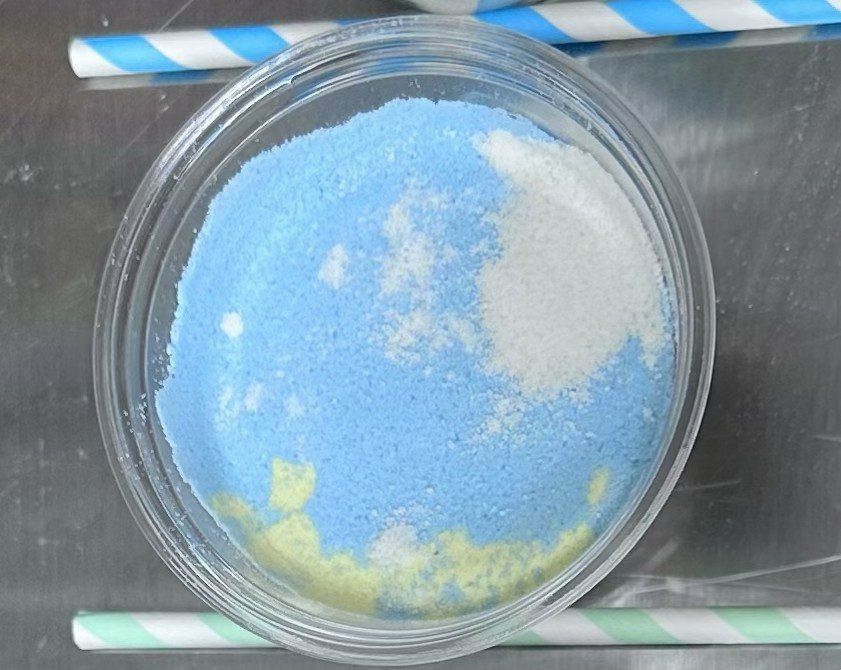 Ingredients: Sodium Bicarbonate, Citric Acid, Sea Salt, Arrowroot Powder, Colloidal Oatmeal (Avena Sativa Kernel Flour), Kaolin Clay, Coconut Milk (Dehydrated Coconut Milk, Maltodextrin And Milk Protein), SLSA, Cocamidopropyl Betaine, Polysorbate 80, Shea Butter (Butyrospermum Parkii Fruit Butter), Chamomile Extract (Caprylic Triglyceride, Chamomilla Rectita Flower Extract), Sweet Almond Oil (Prunus Amygdalus Dulcis Oil), Fragrance, FD&C Blue 1 Lake, Mica, Titanium Dioxide, Iron Oxide